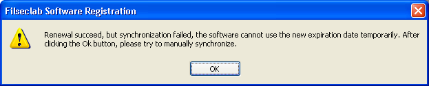 Occurs this problem means that the renewal date has saved in our server, but it did not yet synchronize to your computer, your computer may not use the new expiration date temporarily, you may click Yes, the program will switch to "Synchronization" frame, and you may try to synchronize again.