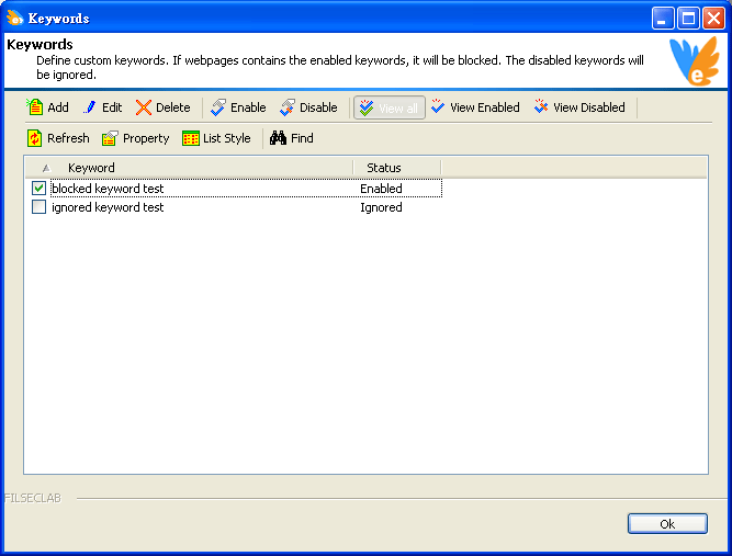 a keyword. If a keyword is enabled and a website contains it, this website will be