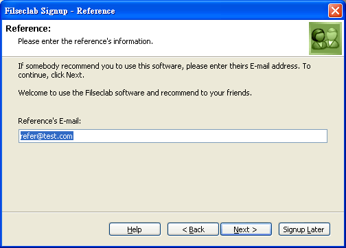 If there have somebody recommend you to use this software, you may enter their e-mail address. If not, you may input nothing, and directly click Next to continue.