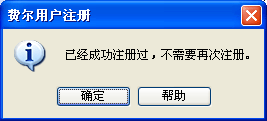 因为用户注册只是进行一些用户调查,没有必要进行重复注册,所以在注册成功一次后,再运行用户注册程序,将出现上面的提示,并不能进行再此注册。