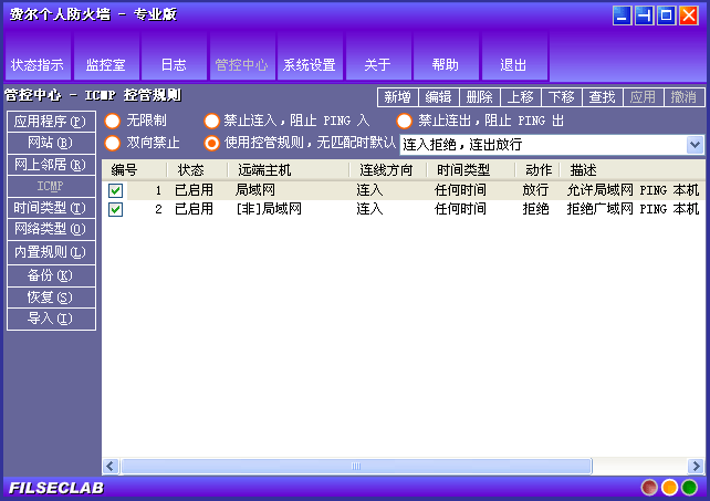 ICMP 规则用来控制 ICMP 封包。画面如下: