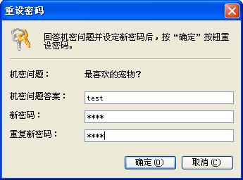 如果你忘记了密码,可以点击“忘记密码”按钮,重设密码对话框将被弹出,如下图: